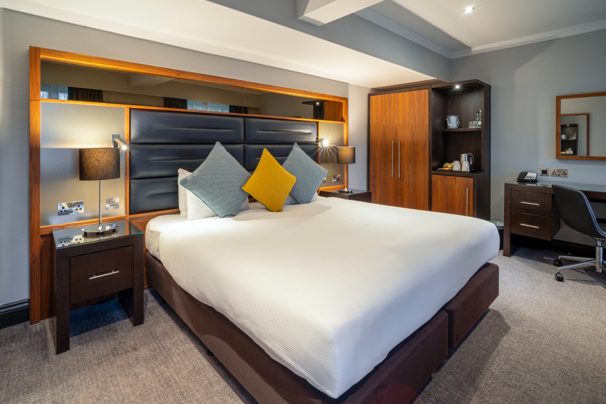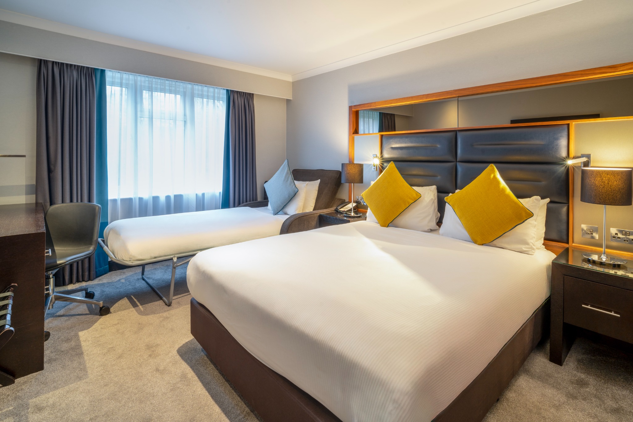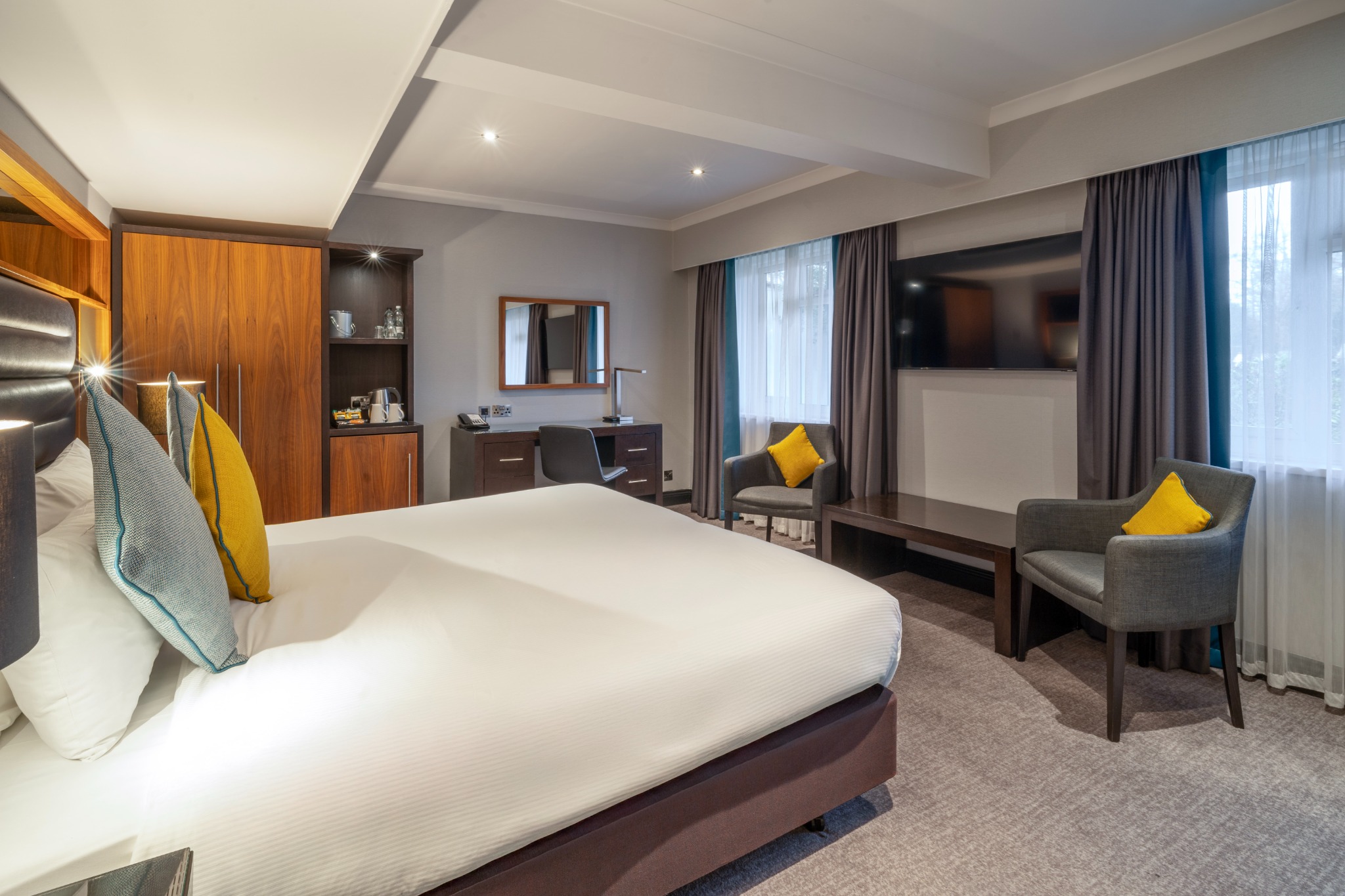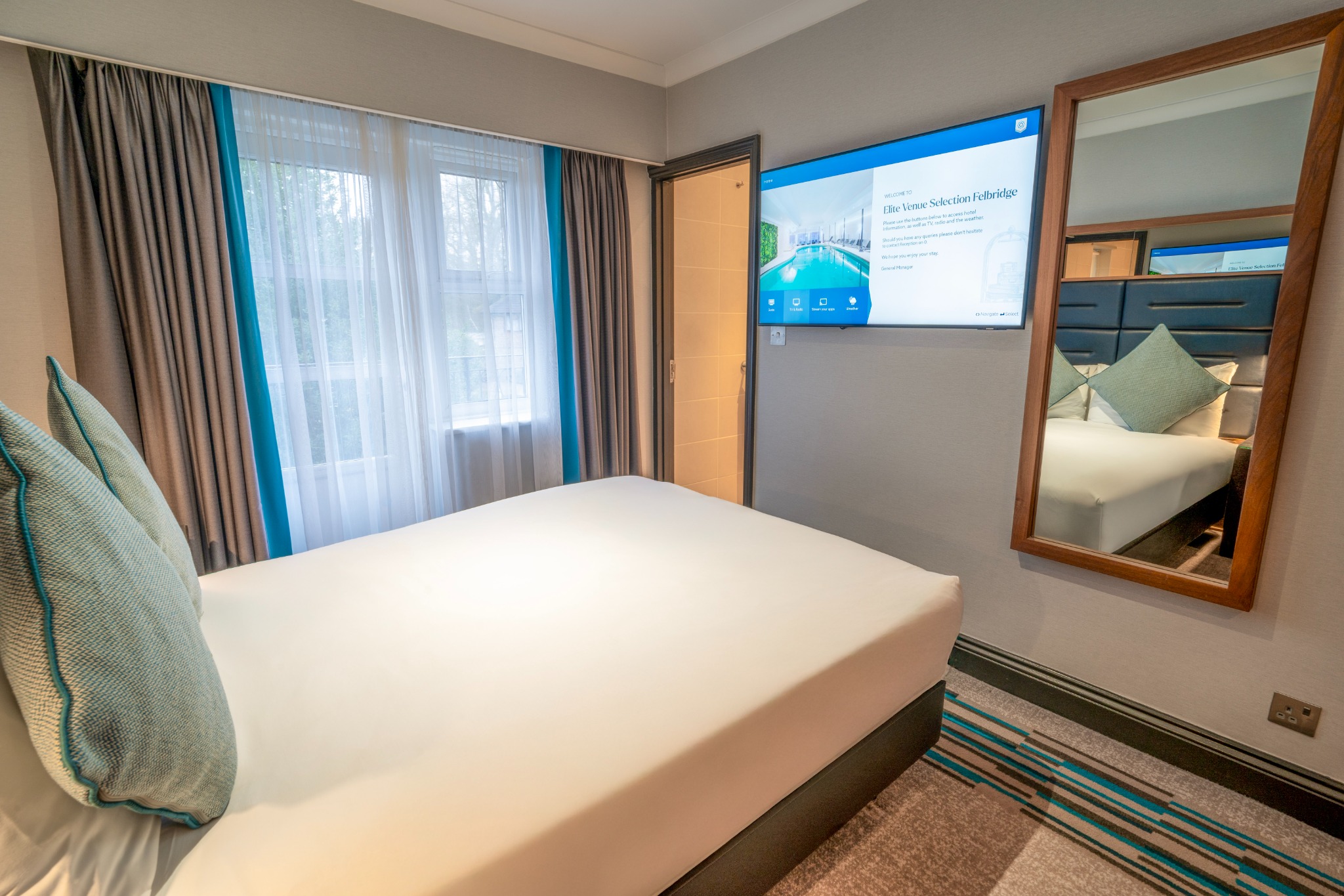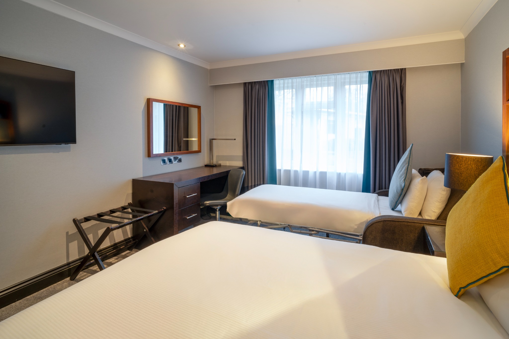 A comfortable Double or Twin Room, offering everything you need for a restful and enjoyable stay. Filled with natural light and stylish décor, it provides the convenience of complimentary Wi-Fi, a private en-suite bathroom, and in-room essentials including a television and other modern features. The room also presents a cosy carpeted layout and thoughtful details designed to make you feel at home.