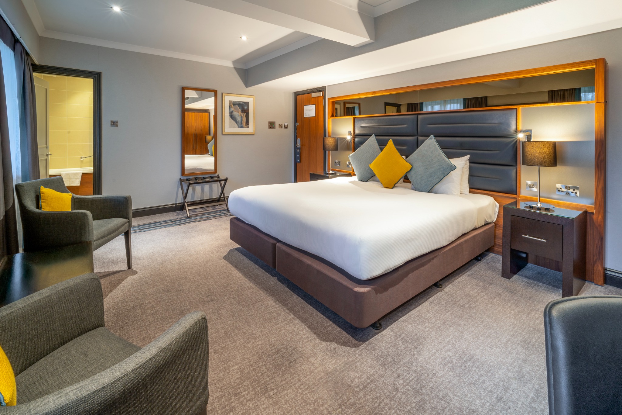A stylish Double Room offering everything you need for a comfortable and enjoyable stay. Filled with natural light and elegant décor, it provides the convenience of complimentary Wi-Fi, a private en-suite bathroom, and in-room essentials including a television and other modern features. The room also presents a cosy carpeted layout and thoughtful details designed to enhance your experience.