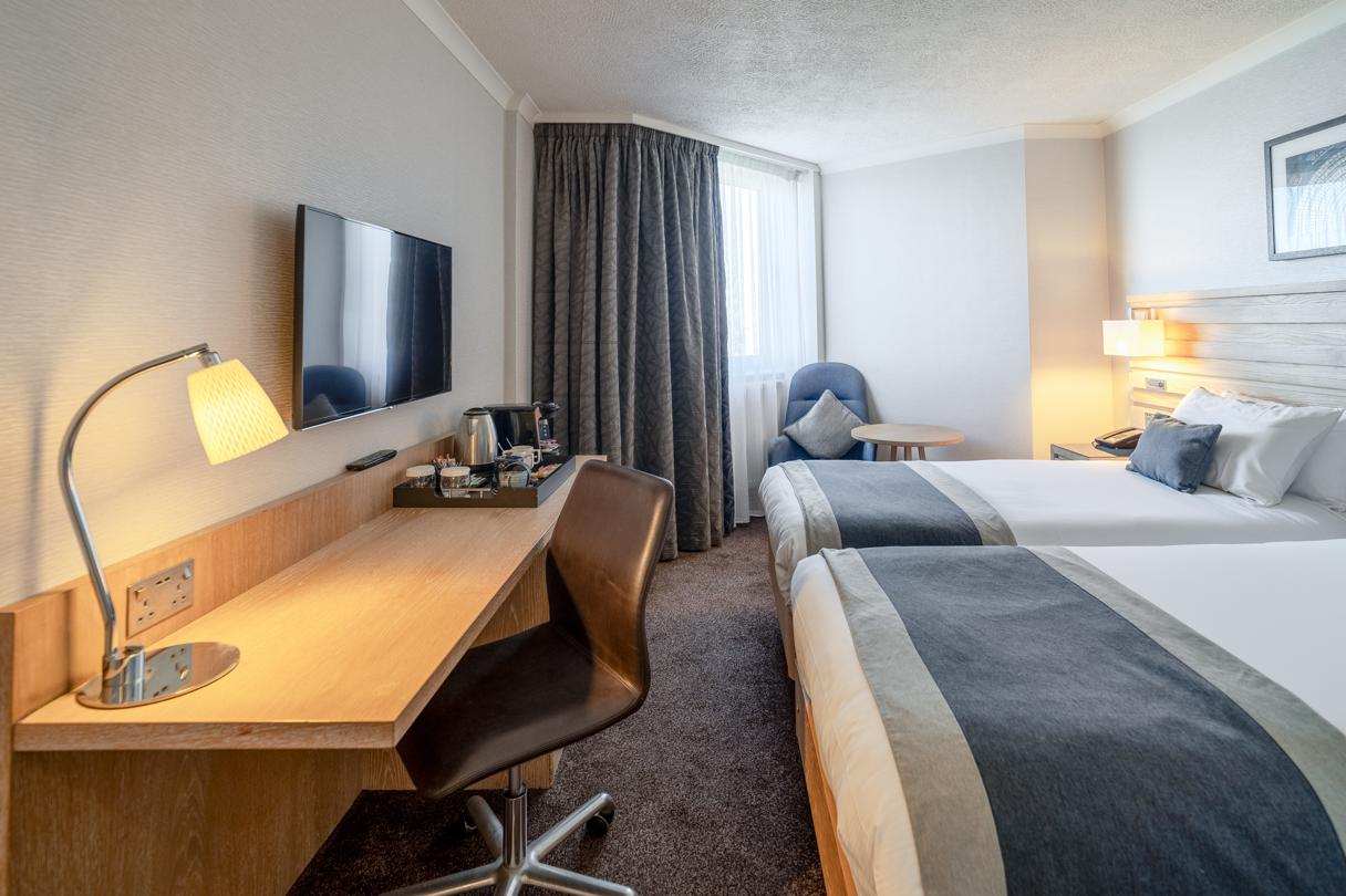 A stylish Twin Room offering everything you need for a comfortable and enjoyable stay. Filled with natural light and elegant décor, it provides the convenience of complimentary Wi-Fi, a private en-suite bathroom, and in-room essentials including a television and other modern features. The room also presents a cosy carpeted layout and thoughtful details designed to enhance your experience.