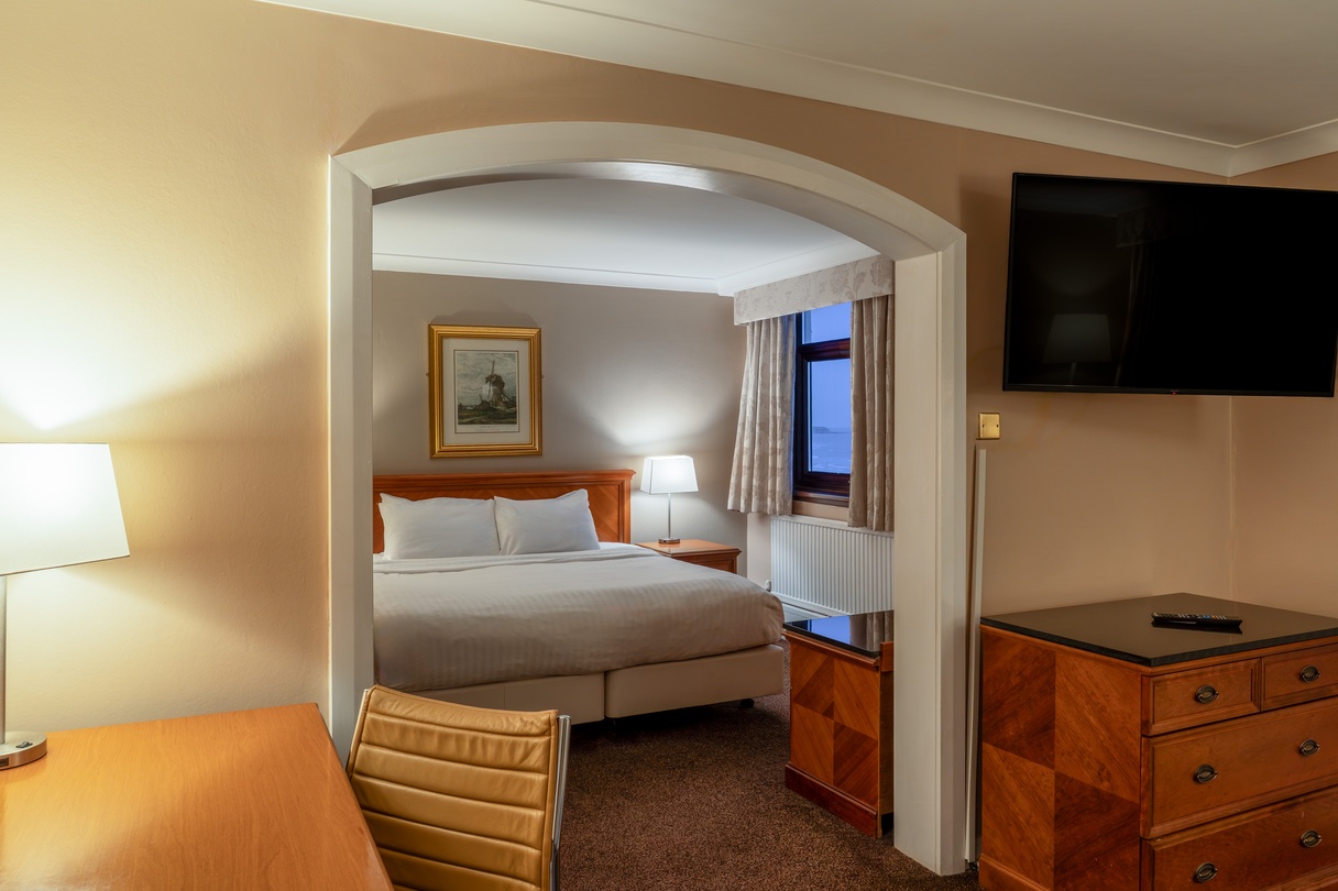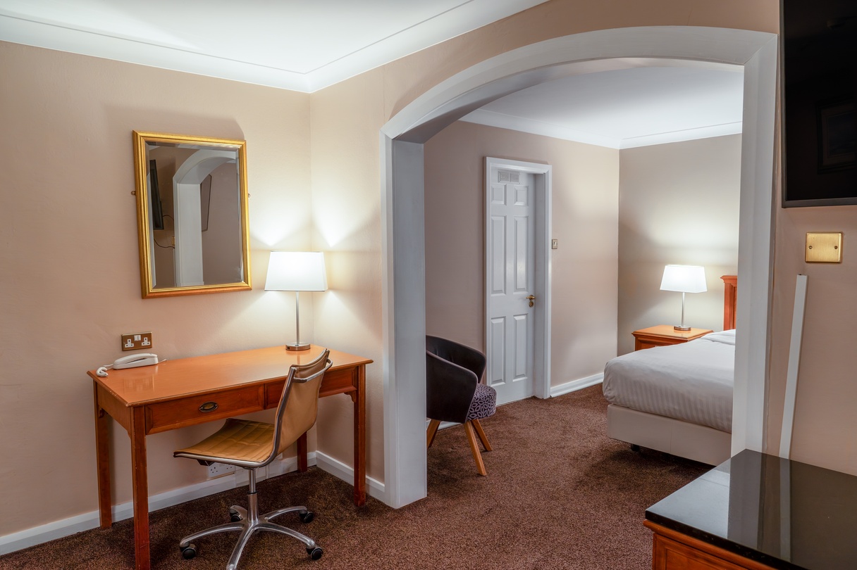 One of our most luxurious rooms, offering everything you need for a truly relaxing and enjoyable stay. Filled with abundant natural light and elegant décor, it provides the convenience of complimentary Wi-Fi, a private en-suite bathroom, and in-room essentials including a television and other modern features. The room also presents a separate seating area, a cosy carpeted layout, and thoughtful details designed to enhance your comfort.