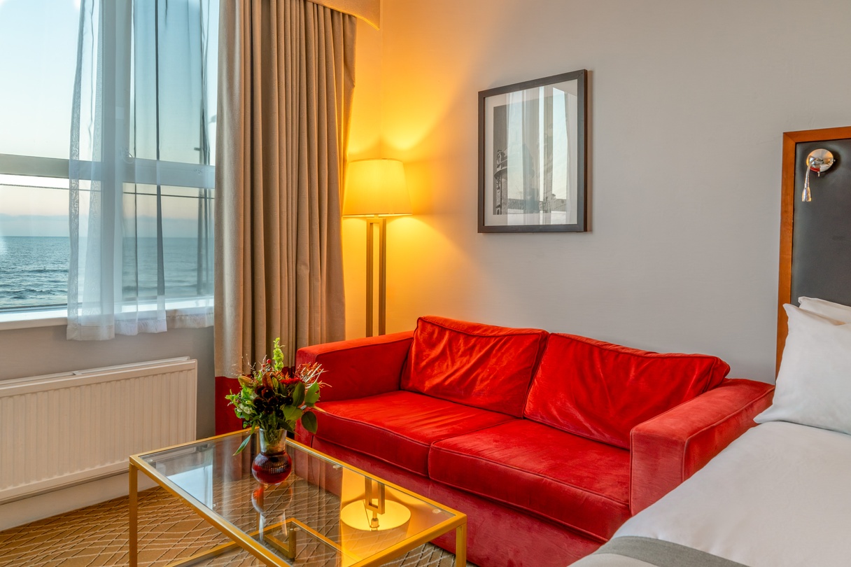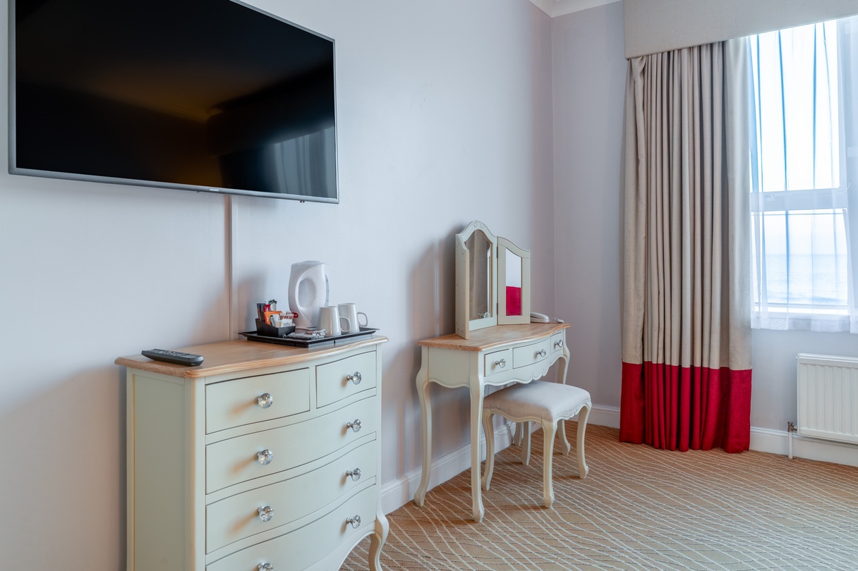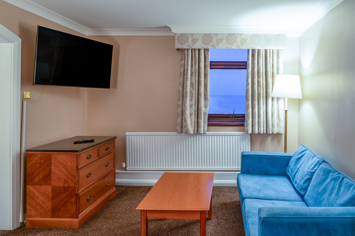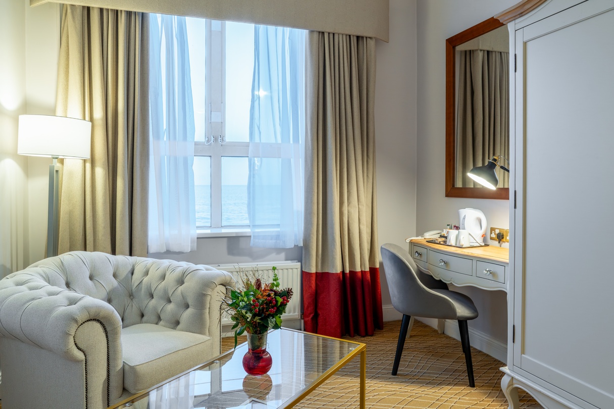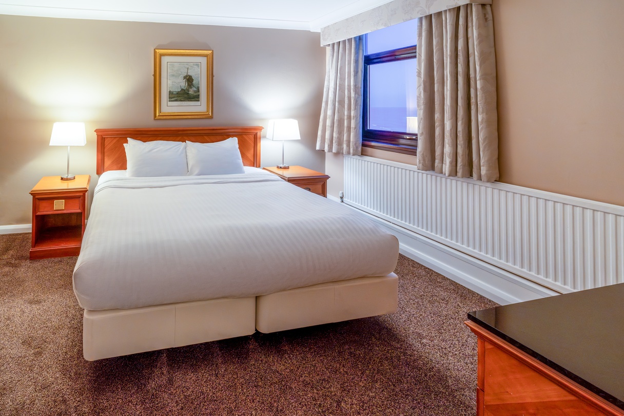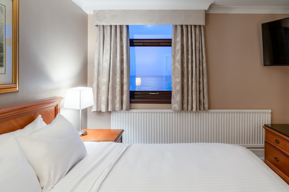 A comfortable Standard Room with stunning sea views, offering everything you need for a restful and enjoyable stay. Filled with natural light and stylish décor, it provides the convenience of complimentary Wi-Fi, a private en-suite bathroom, and in-room essentials including a television and other modern features. The room also presents a cosy carpeted layout and thoughtful details designed to make you feel at home.