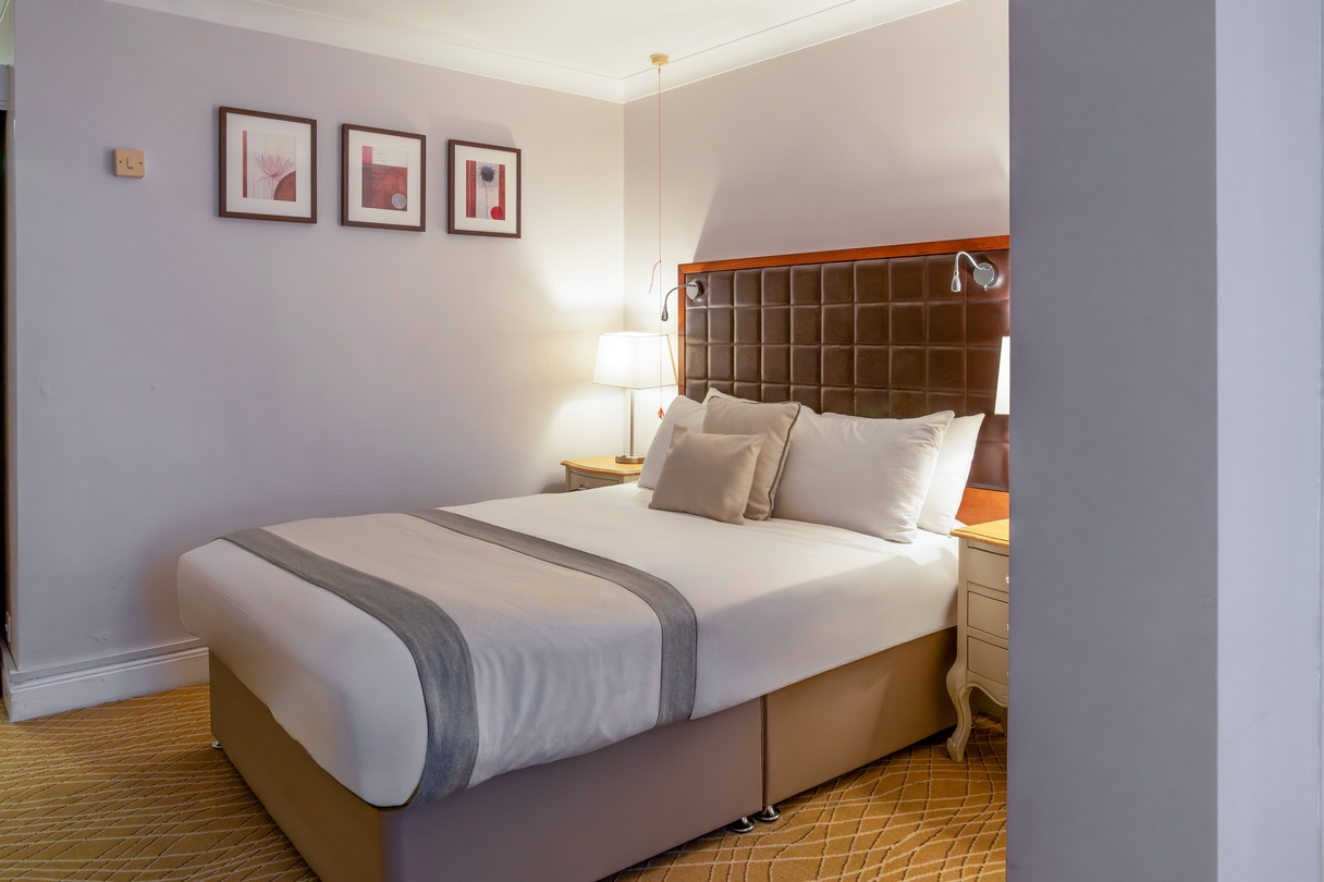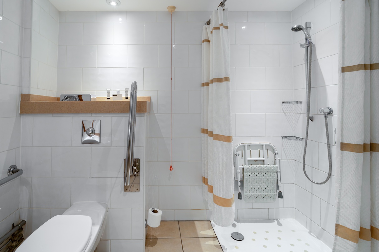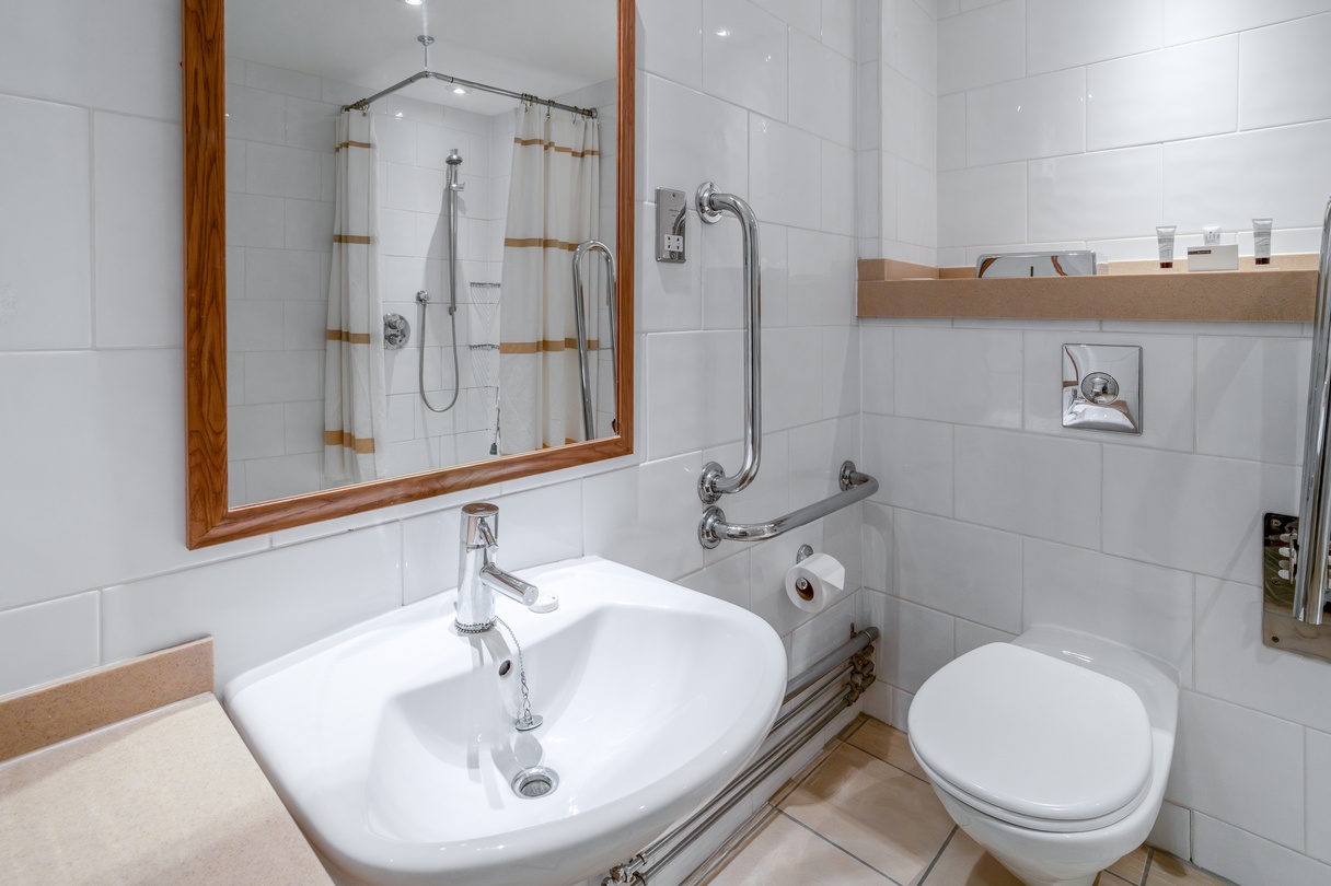 A comfortable Double Room with added accessibility, offering everything you need for a restful and enjoyable stay. Filled with natural light and stylish décor, it provides the convenience of complimentary Wi-Fi, a private en-suite bathroom, and in-room essentials including a television and other modern features. The room also provides a cosy carpeted layout and thoughtful details designed to give comfort and ease throughout your stay.