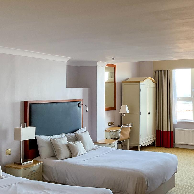 A comfortable Double Room with added accessibility, offering everything you need for a restful and enjoyable stay. Filled with natural light and stylish décor, it provides the convenience of complimentary Wi-Fi, a private en-suite bathroom, and in-room essentials including a television and other modern features. The room also provides a cosy carpeted layout and thoughtful details designed to give comfort and ease throughout your stay.