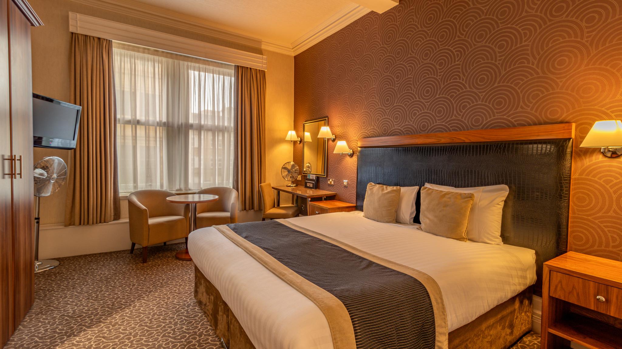 A stylish Double Room offering everything you need for a comfortable and enjoyable stay. Filled with natural light and elegant décor, it provides the convenience of complimentary Wi-Fi, a private en-suite bathroom, and in-room essentials including a television and other modern features. The room also presents a cosy carpeted layout and thoughtful details designed to enhance your experience.