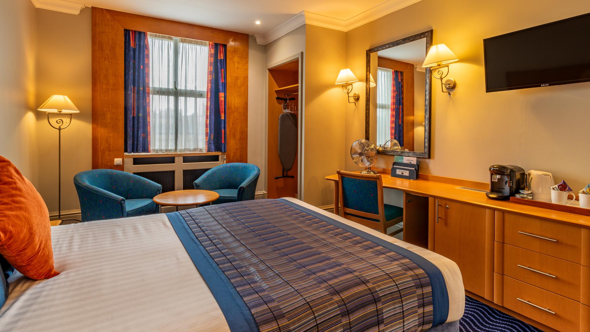 A comfortable Double or Twin Room, offering everything you need for a restful and enjoyable stay. Filled with natural light and stylish décor, it provides the convenience of complimentary Wi-Fi, a private en-suite bathroom, and in-room essentials including a television and other modern features. The room also presents a cosy carpeted layout and thoughtful details designed to make you feel at home.