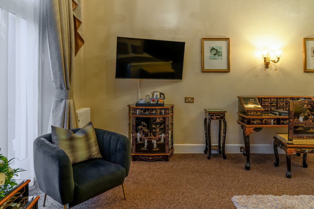 Our most luxurious room, offering everything you need for a truly relaxing and enjoyable stay. Filled with abundant natural light and elegant décor, it provides the convenience of complimentary Wi-Fi, a private en-suite bathroom, and in-room essentials including a television and other modern features. The room also presents a separate seating area, a cosy carpeted layout, and thoughtful details designed to enhance your comfort.