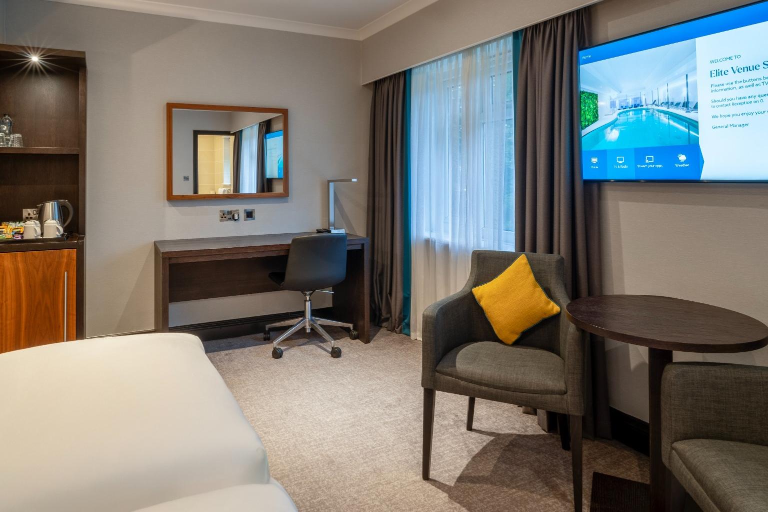A stylish Double Room offering everything you need for a comfortable and enjoyable stay. Filled with natural light and elegant décor, it provides the convenience of complimentary Wi-Fi, a private en-suite bathroom, and in-room essentials including a television and other modern features. The room also presents a cosy carpeted layout and thoughtful details designed to enhance your experience.