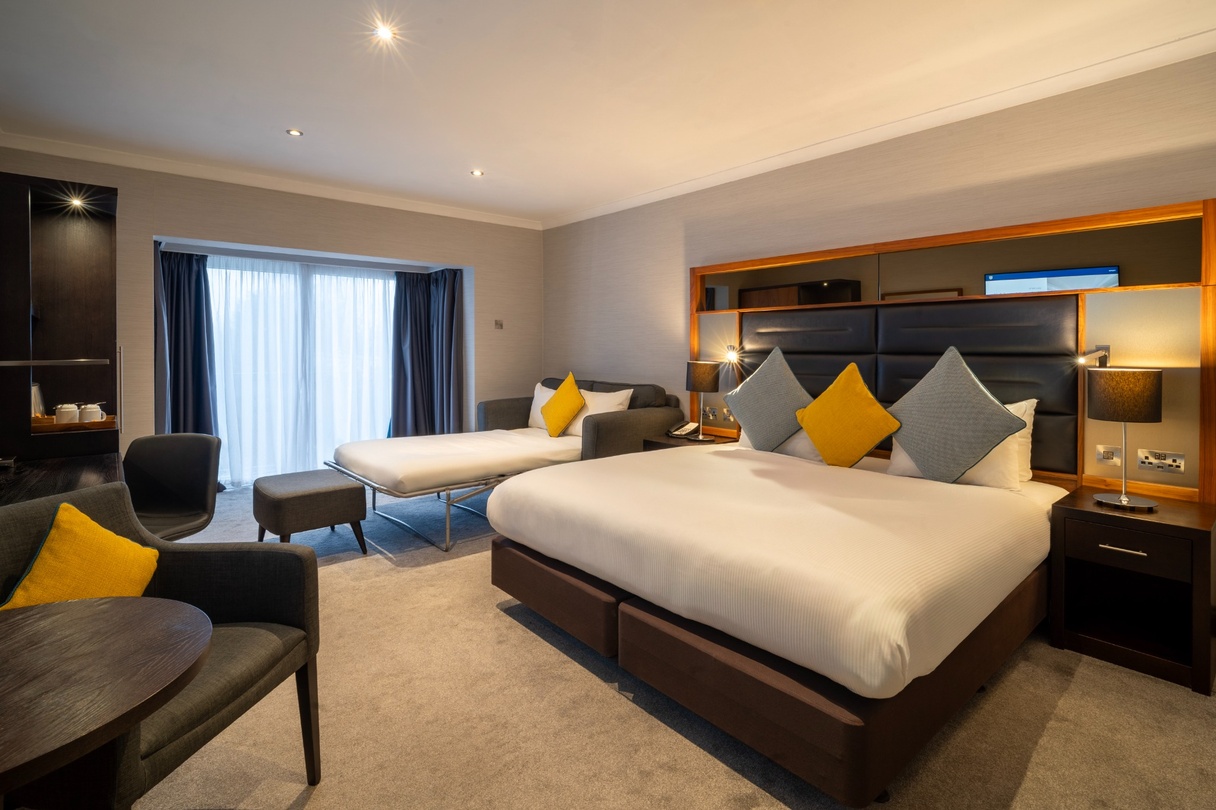 A spacious Family Room offering everything you need for a restful and enjoyable stay. Featuring one double bed and one single, it is filled with natural light and stylish décor, and provides the convenience of complimentary Wi-Fi, a private en-suite bathroom, and in-room essentials including a television and other modern features. The room also presents a cosy carpeted layout and thoughtful details designed to make you feel at home.