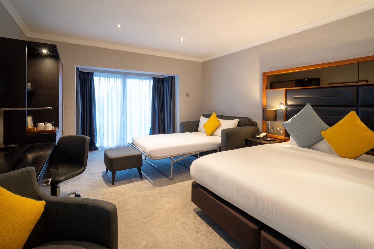 A stylish Family Room offering everything you need for a restful and enjoyable stay. Featuring one double bed and one single, it is filled with natural light and stylish décor, and provides the convenience of complimentary Wi-Fi, a private en-suite bathroom, and in-room essentials including a television and other modern features. The room also presents a cosy carpeted layout and thoughtful details designed to make you feel at home.