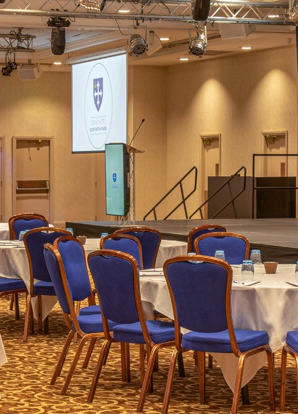 The hotel offers 23,000 sq ft of flexible venue space, fully equipped for conferences, weddings and events, set within 12 acres of scenic parkland.