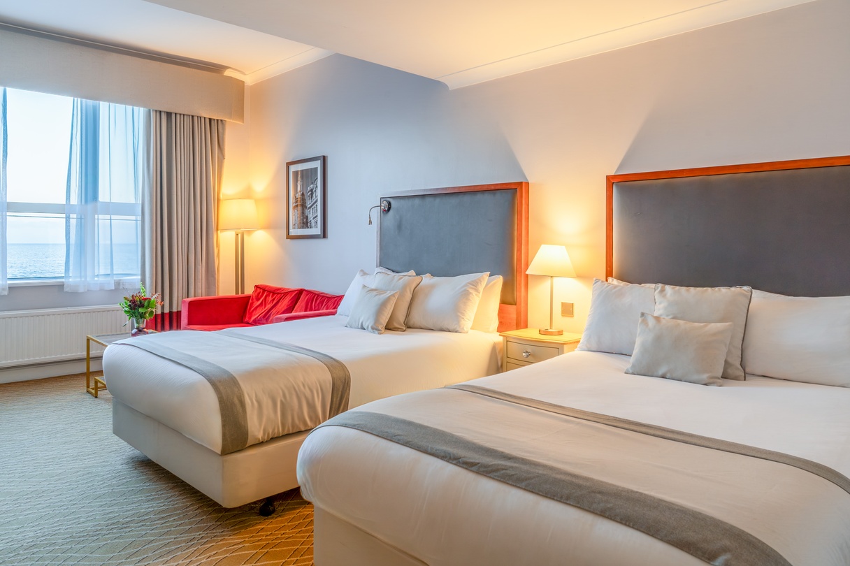 A comfortable Standard Room with stunning sea views, offering everything you need for a restful and enjoyable stay. Filled with natural light and stylish décor, it provides the convenience of complimentary Wi-Fi, a private en-suite bathroom, and in-room essentials including a television and other modern features. The room also presents a cosy carpeted layout and thoughtful details designed to make you feel at home.