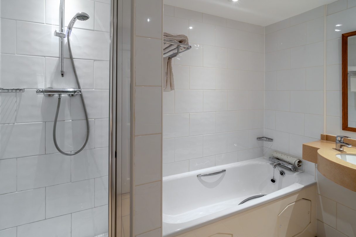 A comfortable Double Room with added accessibility, offering everything you need for a restful and enjoyable stay. Filled with natural light and stylish décor, it provides the convenience of complimentary Wi-Fi, a private en-suite bathroom, and in-room essentials including a television and other modern features. The room also provides a cosy carpeted layout and thoughtful details designed to give comfort and ease throughout your stay.