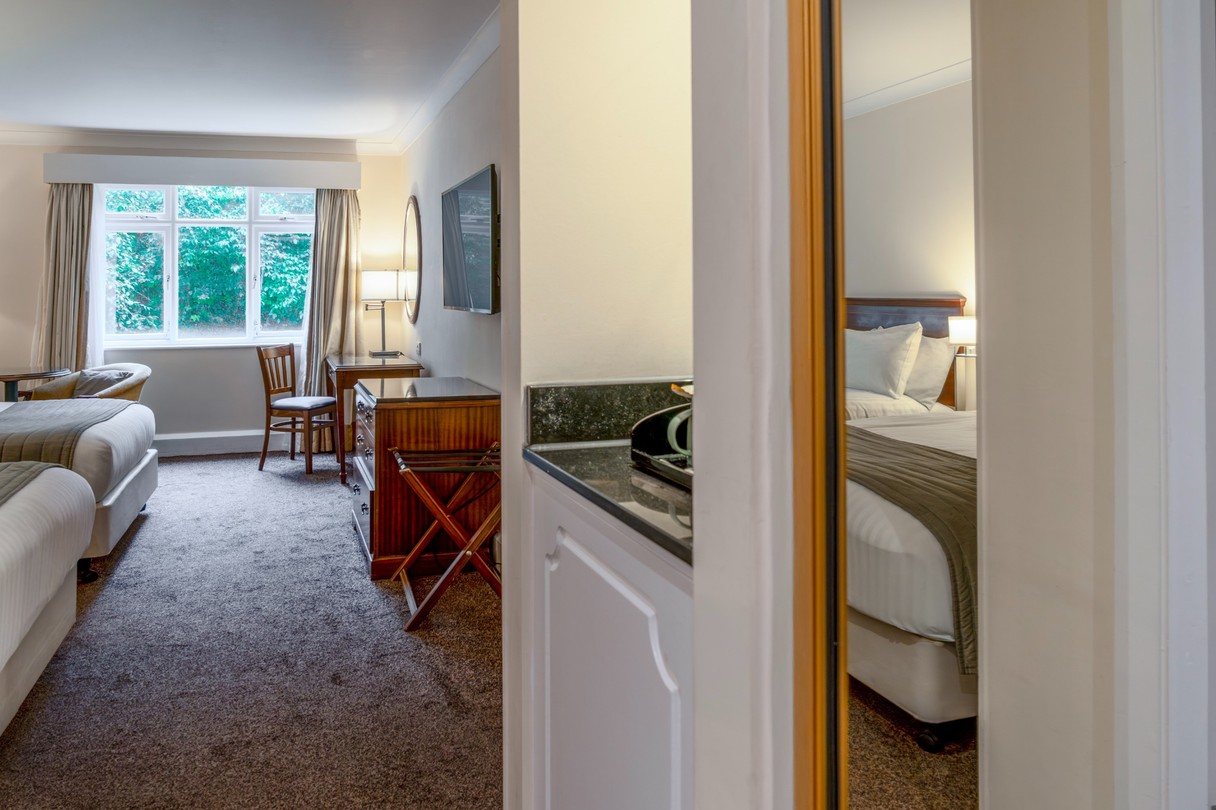 A spacious Family Room offering everything you need for a restful and enjoyable stay. Featuring two double beds, it is filled with natural light and stylish décor, and provides the convenience of complimentary Wi-Fi, a private en-suite bathroom, and in-room essentials including a television and other modern features. The room also presents extra space, a cosy carpeted layout, and thoughtful details designed to make you feel at home.