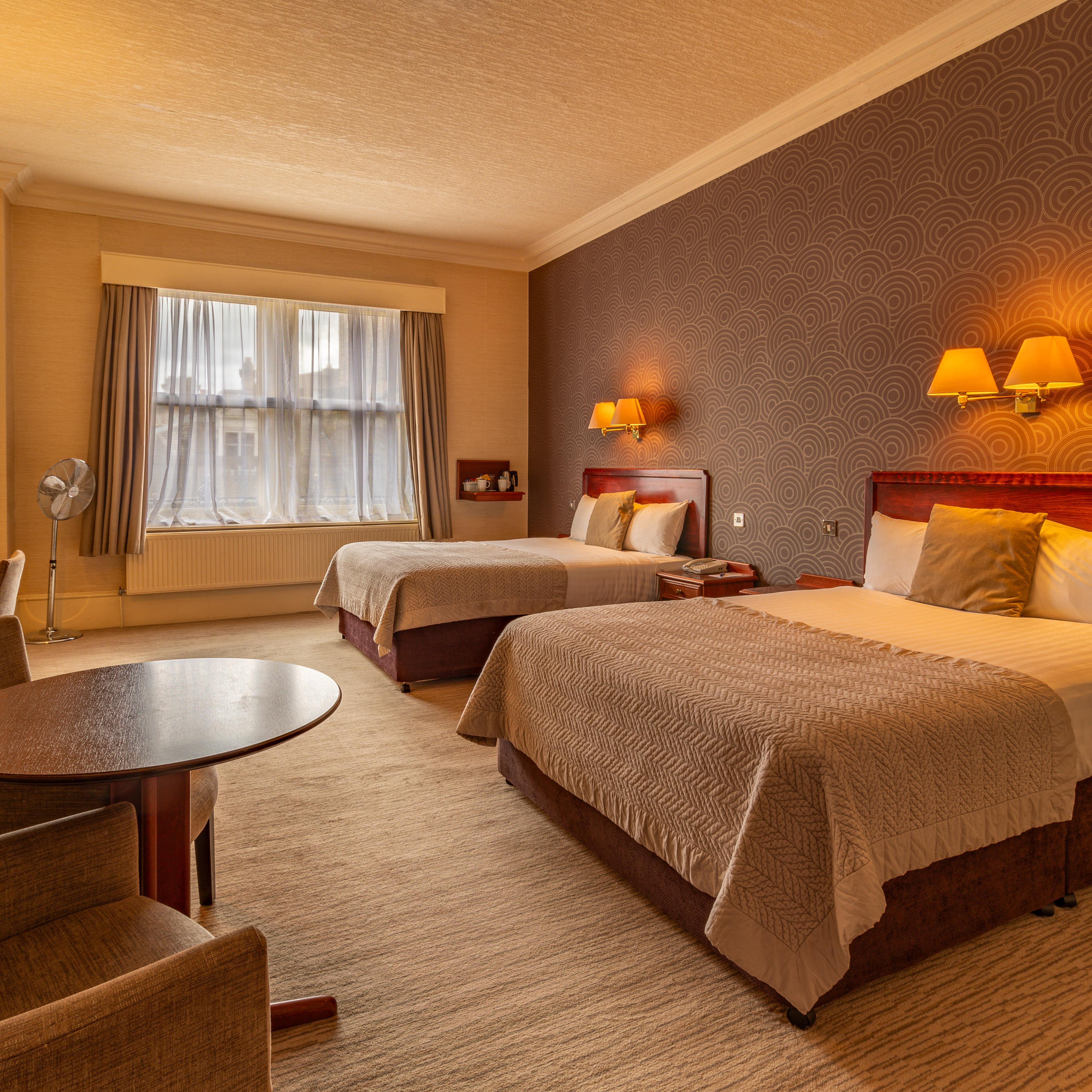 A spacious Family Room offering everything you need for a restful and enjoyable stay. Featuring two double beds, it is filled with natural light and stylish décor, and provides the convenience of complimentary Wi-Fi, a private en-suite bathroom, and in-room essentials including a television and other modern features. The room also presents extra space, a cosy carpeted layout, and thoughtful details designed to make you feel at home.