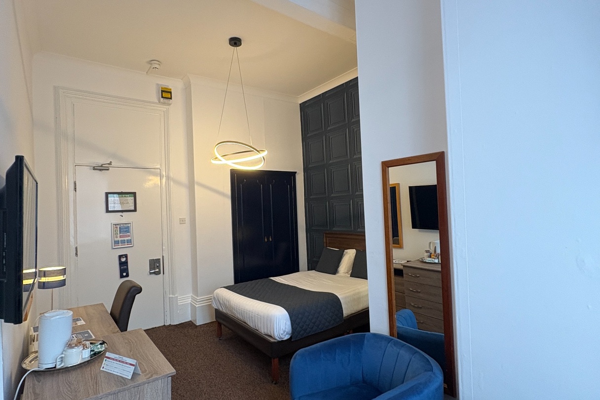 A comfortable Double or Twin Room, offering everything you need for a restful and enjoyable stay. Filled with natural light and stylish décor, it provides the convenience of complimentary Wi-Fi, a private en-suite bathroom, and in-room essentials including a television and other modern features. The room also presents a cosy carpeted layout and thoughtful details designed to make you feel at home.